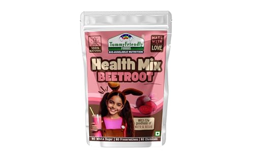 TummyFriendly Foods Organic Beetroot Health Mix For Kids - 300g. Introducing our Organic Multi Grain Health Mix Powder - the ultimate health drink for kids! Crafted with care and packed with goodness this nutritious blend is specially formulated to provide essential nutrients for growing children. Say goodbye to sugar worries! Our health drink for kids without sugar offers a healthy option for parents seeking wholesome alternatives. Made with natural ingredients it's a deliciously healthy choice that kids will love. Created with the well-being of children in mind our health mix for kids is homemade with love. We understand the importance of nourishing your little ones with the best which is why our blend is free from artificial additives and preservatives. Suitable for ages 2-6 years our health mix for kids malt is designed to support their growth and development. With a rich combination of grains it's a powerhouse of nutrients that helps fuel their active lifestyles. Looking for a Healthy Milk Mix powder for kids? Look no further! Our Health mix for kids is the perfect solution. Packed with vitamins and minerals it's an easy and convenient way to ensure your child gets their daily dose of goodness. Make the switch to our Organic Multi Grain Health Mix Powder today and give your kids the gift of health and vitality. With every sip they'll be nourished energized and ready to take on the world!