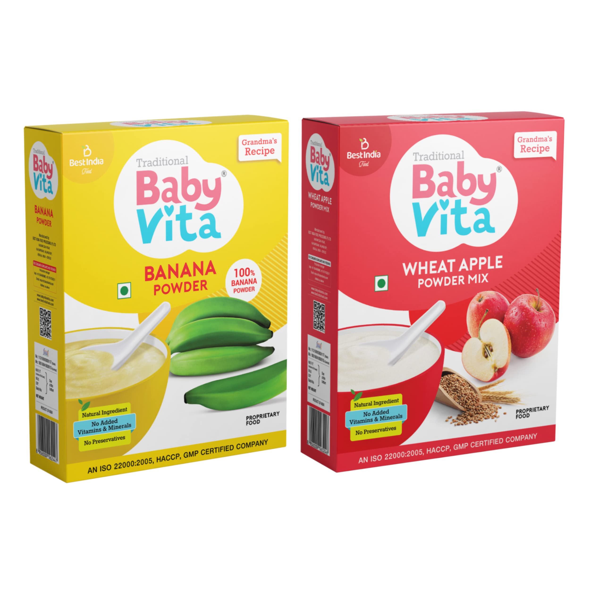 Best India Food Processing Pvt. Ltd. is one of the leading Traditional and Proprietary food manufacturers in South India. Â Our products have been recognized and accepted for its natural quality and result beyond geographical boundaries and borders over the period about three decades and the trust affirmed by millions of consumers on us are awesome and inspirational. Due to this wide acceptance the demand for our product went up manifold over the years.WHEAT APPLE POWDER MIX: Babyvita Wheat Apple powder mix is a diet inherited from our Grandmas and practised even in this modern age and is one of the most preferred foods for our dear ones. It is processed scientifically by using latest machinery under the supervision of experts without losing the nutritional qualities of apple wheat cardamom and nut-grass. It contains essential vitamins minerals and other micronutrients. Regular use of this diet helps to improve immunity and enhance the digestion process. BABYVITA KERALA BANANA POWDERÂ Babyvita banana powder is a traditional diet from raw Nendran banana which is rich in carbohydrate minerals dietary fibre and other such micronutrients. Â It is processed under the supervision of quality managers without losing its nutritional qualities. Bananas may improve digestion and helps in building up metabolism. It gives immunity to children and elderly men.