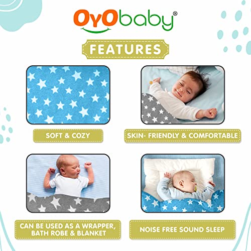 OYO BABY Baby Blanket New Born Babies Super Soft Baby Combo Wrapper Baby Sleeping Bag for Baby Boys Baby Girls | All Season | Sleeping Bag | Nursing Baby Gifts(Blue & Grey Star Printed)