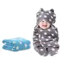 OYO BABY Baby Blankets Combo | for New Born Babies Baby Boys, Baby Girls, Babies for 0-6 Months, Fleece, Skin Friendly, 2 Blankets (Star Blue Square + Star Grey Hooded)