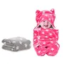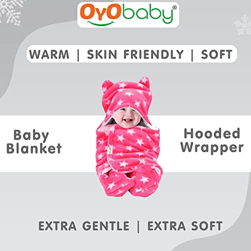 OYO BABY Baby Blankets Combo | for New Born Babies Baby Boys, Baby Girls, Babies for 0-6 Months, Fleece, Skin Friendly, 2 Blankets (Star Grey Square + Star Pink Hooded)