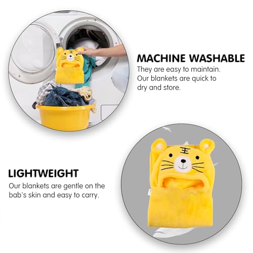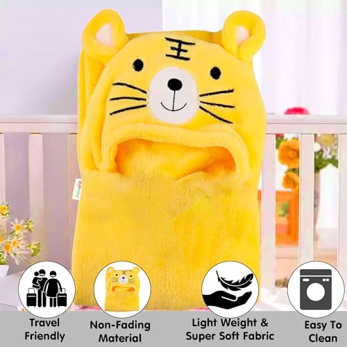 OYO BABY 3-in-1 Baby Blanket with Animal Face Hood | All-Season Soft Swaddle Blanket for Newborns 0-6 Months | Skin-Friendly Baby Blanket | Yellow Tiger Design | Ideal Baby Shower Gift