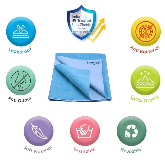 FOR BABYS HEALTHY COMFORT: Babies need care love and undisturbed sleep. Bumtum Ultra Leakproof Sheet is specially curated for your baby. With this ultra leakproof sheet your baby will have a peaceful sleep.