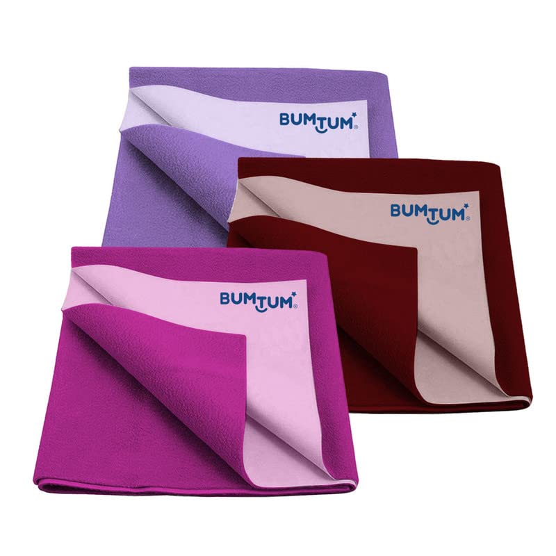Bumtum Baby Dry Sheet Waterproof Quick Soft Fleece Baby Bed Protector | Anti - Bacterial, Extra Absorbant, Reuseable & Washable (Lilac + Maroon + Grape Combo, Large Size, 100 * 140cm, Pack of 3)