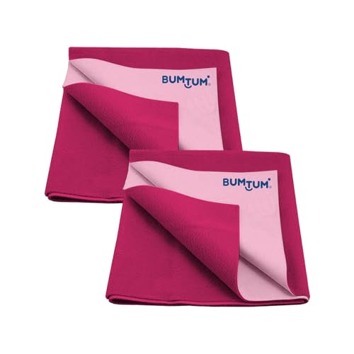 Bumtum Baby Dry Sheet Waterproof Quick Soft Microfleece Baby Bed Protector | Anti - Bacterial & Odour Free | Extra Absorbant, Reuseable & Washable (Hot Pink, Large Size, Pack of 2), Microfleece