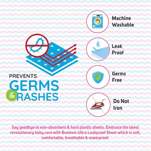 HYGIENIC DRYNESS: It locks all the wetness and dries instantly ensuring hygiene and protection of your baby's soft skin. Bumtum Ultra Leakproof Sheet is perfect for a baby's healthy comfortable & cosy nap.