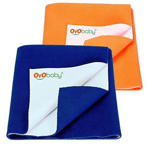HomeBabyNurseryCrib SheetsOYO BABY Waterproof Baby Bed Protector Dry Sheets for New Born Babies | Reusable Mats | Cot & Bassinet Gift Pack (Royal Blue + Peach),Small (70cm x 50cm), Polycotton