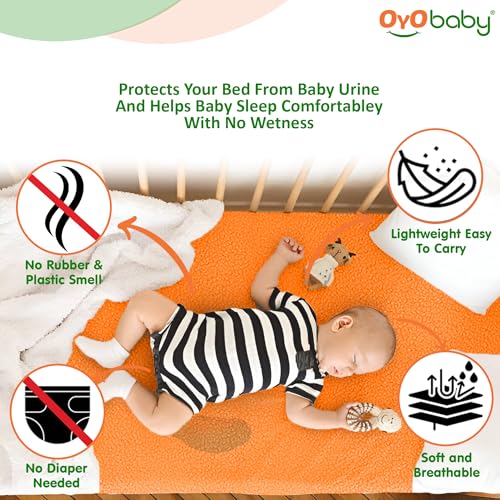 HomeBabyNurseryCrib SheetsOYO BABY Cotton Waterproof Quick Dry Sheet For Baby | Bed Pad | Baby Bed Protector Sheet For Toddler Children (Small (50Cm X 70Cm), Peach)