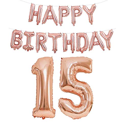 15Th Happy Birthday Aluminum Foil Letters Balloons For Party Supplies And Birthday Decorations (Rose Gold)