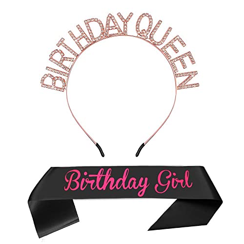 Birthday Queen Rhinestone Headband & Sash Set - Black Pink Birthday Sash Birthday Gifts For Women Birthday Party Supplies