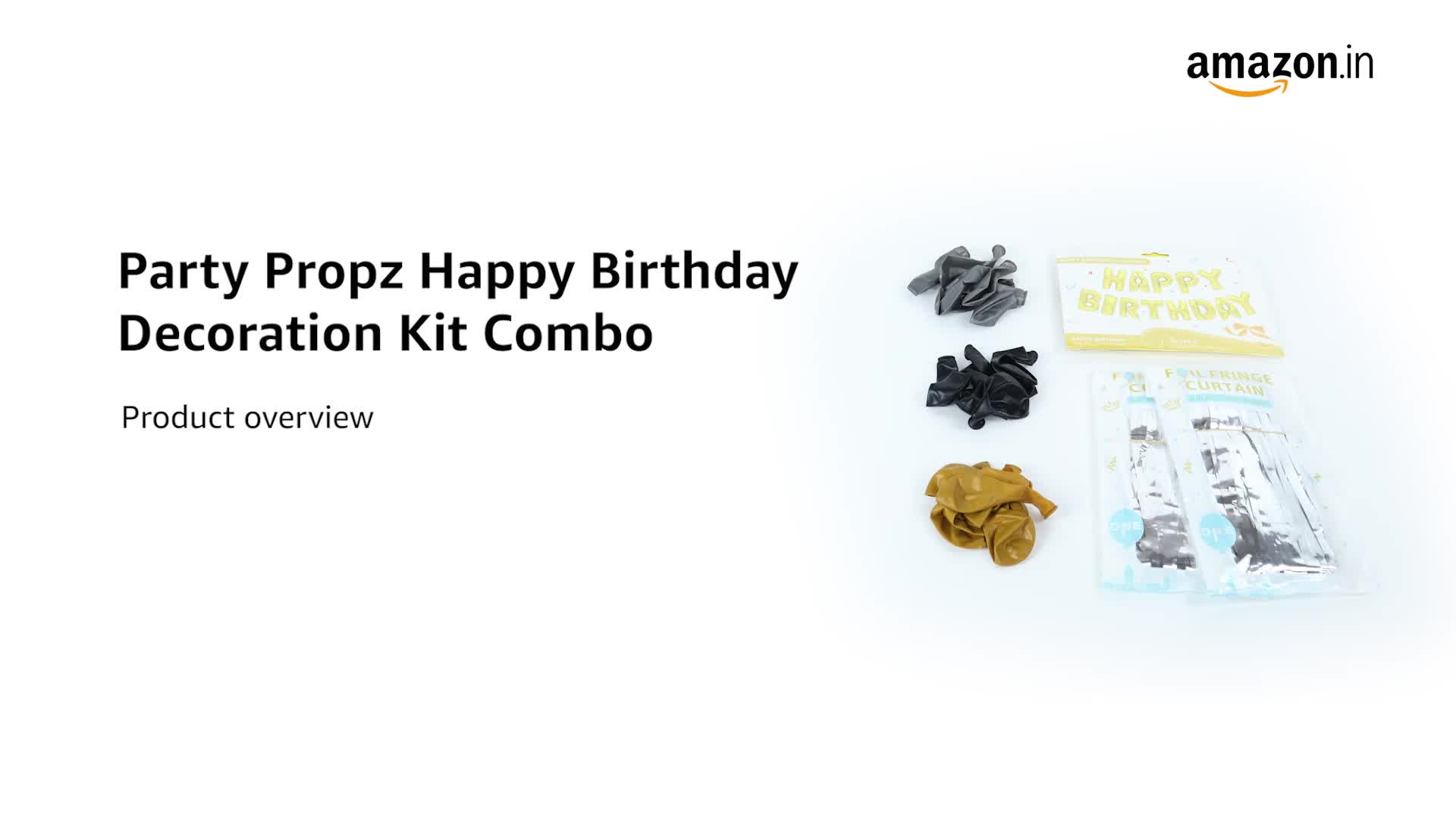 MATERIALS: golden happy birthday foil balloon is made of foil fringe foil curtain is made of foil and metallic ballons are made of rubber/ latex. This balloon propz can be use with our "Party Propz" other decor material like baloon riboon roll baloon acce