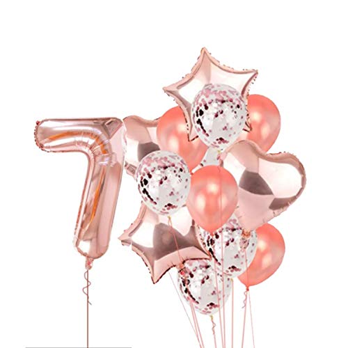 HomeBabyParty SuppliesPop The Party Rose Gold 7 Balloon for 7th Birthday -Large Pack of 15 | Rose Gold Confetti Star and Heart Foil Balloon Bouquet for Party Decoration | Great for 7th Birthday Party Decoration Suplies