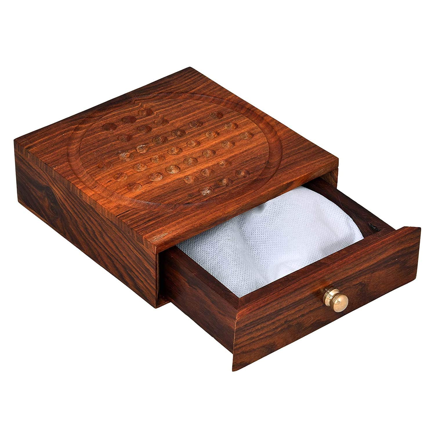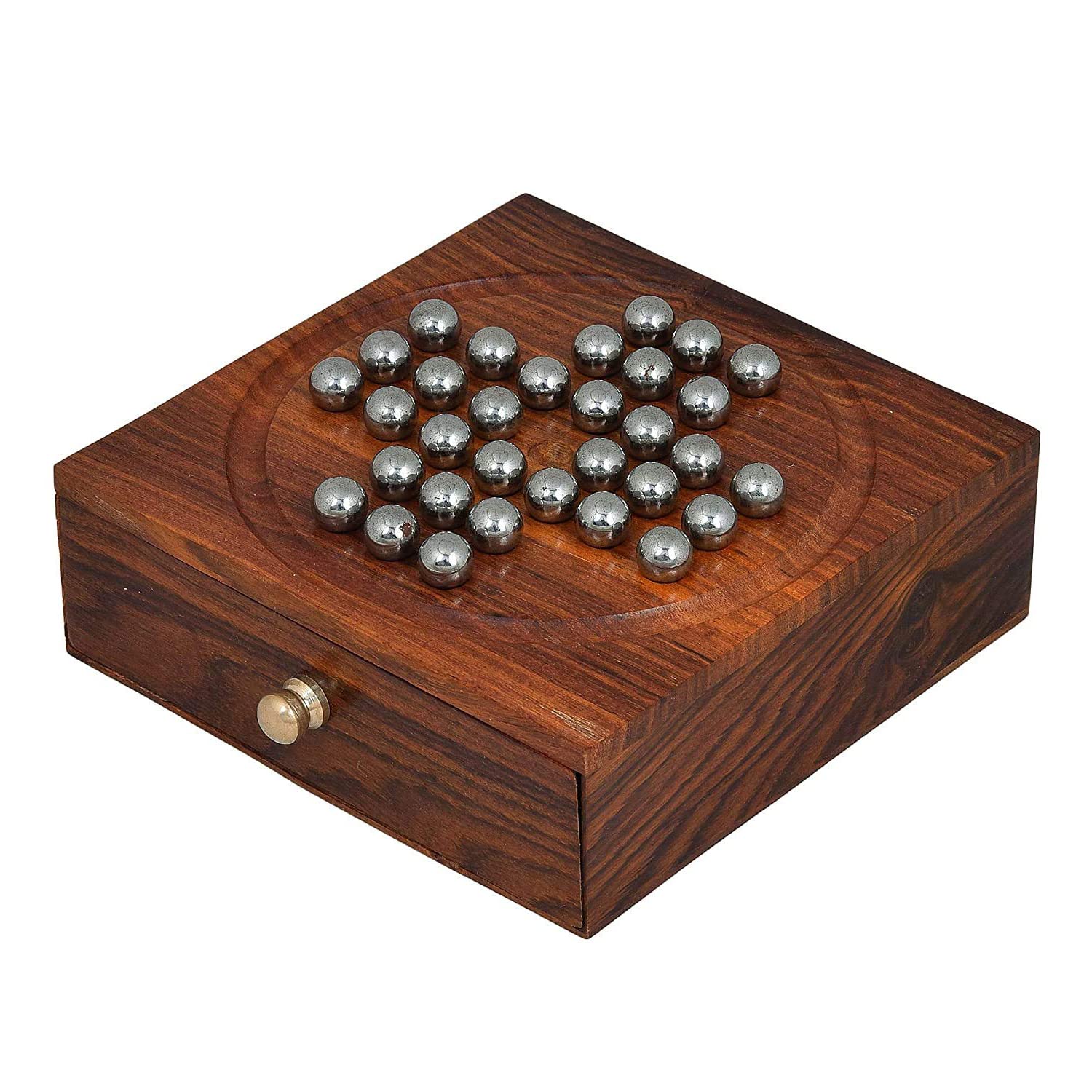 BIJNOR - METAL INLAY IN WOOD Solitaire Board Game Metal Balls Beads with Storage Drawer Wooden Solitaire Wooden Chinese Checker Game Metal bolls Brainvita Unique Game for Child and Adults