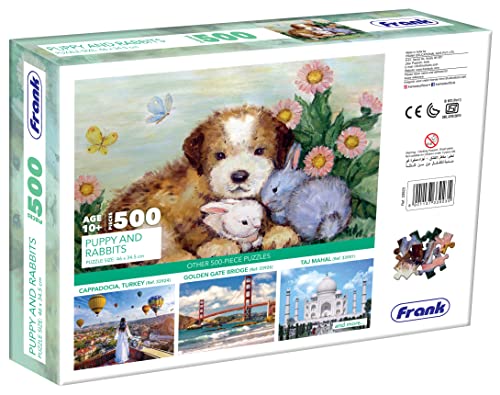 • About: Immerse yourself in the adorable world of puppies and rabbits with the Frank Puppy and Rabbits Jigsaw Puzzle. With 500 pieces this puzzle is suitable for adults and kids above 10 years old.