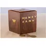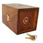The Indian Coin Bank Money Saving Box is inspired by the designs of antique money banks and pirates' treasure chests. Fashioned out of sheesham wood this decorative coin bank or vacation piggy bank has a handsome natural wood finish which is brightened by hand-fashioned brass inlays. A coin slot at the top makes it easy to add coins and the opening is covered with a brass ornament for extra durability. Inspired from the ages' old art of India this wooden box with brass inlay work in elephant shape is hand-carved by the artisans of India. Very solid and sturdy to use it is perfect to add retro charm to your savings. To avoid every time temptation to open it the box can be locked using a 'lock and key' set.The inner velvet lining makes it look very rich and classy to use. Dimensions : Length & Width : 4.5; Height : 3; inches. SECURE & SAFE Use it as a vacation piggy bank to keep coins under lock .