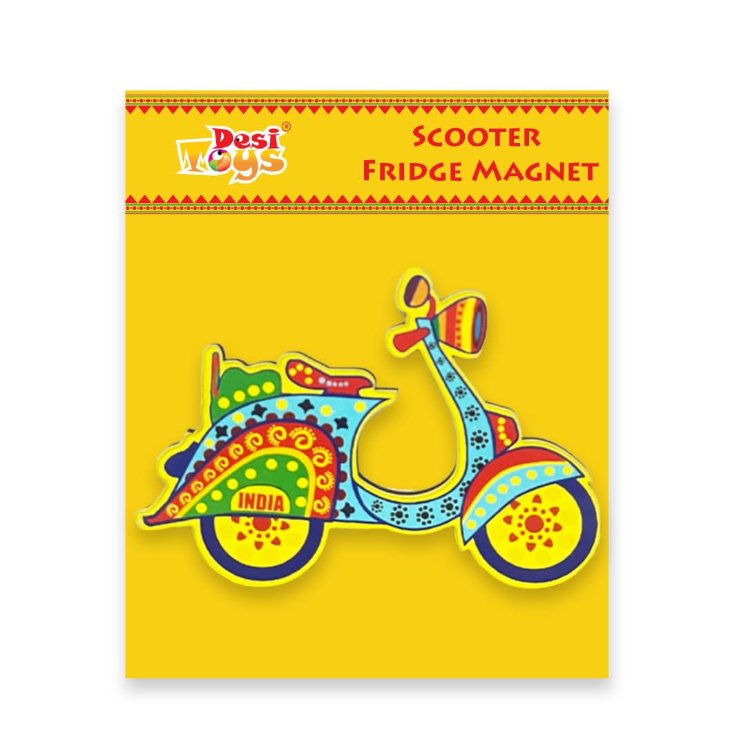 Desi Toys Scooter Fridge Magnet Made in MDF | Design Inspired by Indian Culture | Souvenir | Ideal for Gifting | Vibrant Art | Home & Kitchen Decor Item | Cute & Durable | 3 x 2.3 Inc