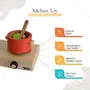 • NON-TOXIC PLAY TOYS: This kitchen set is the perfect toy for who want to roleplay as a chef or cook for their family and friends. The toy is made up of high-quality beech wood has smooth and rounded edges for the safety of the and the colors used are non-