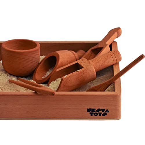 NESTA TOYS - Wooden Sensory Tool Toys | Montessori Toys | Waldorf Toys (Sensory Bin Tools (6 Pcs) with Montessori Tray)