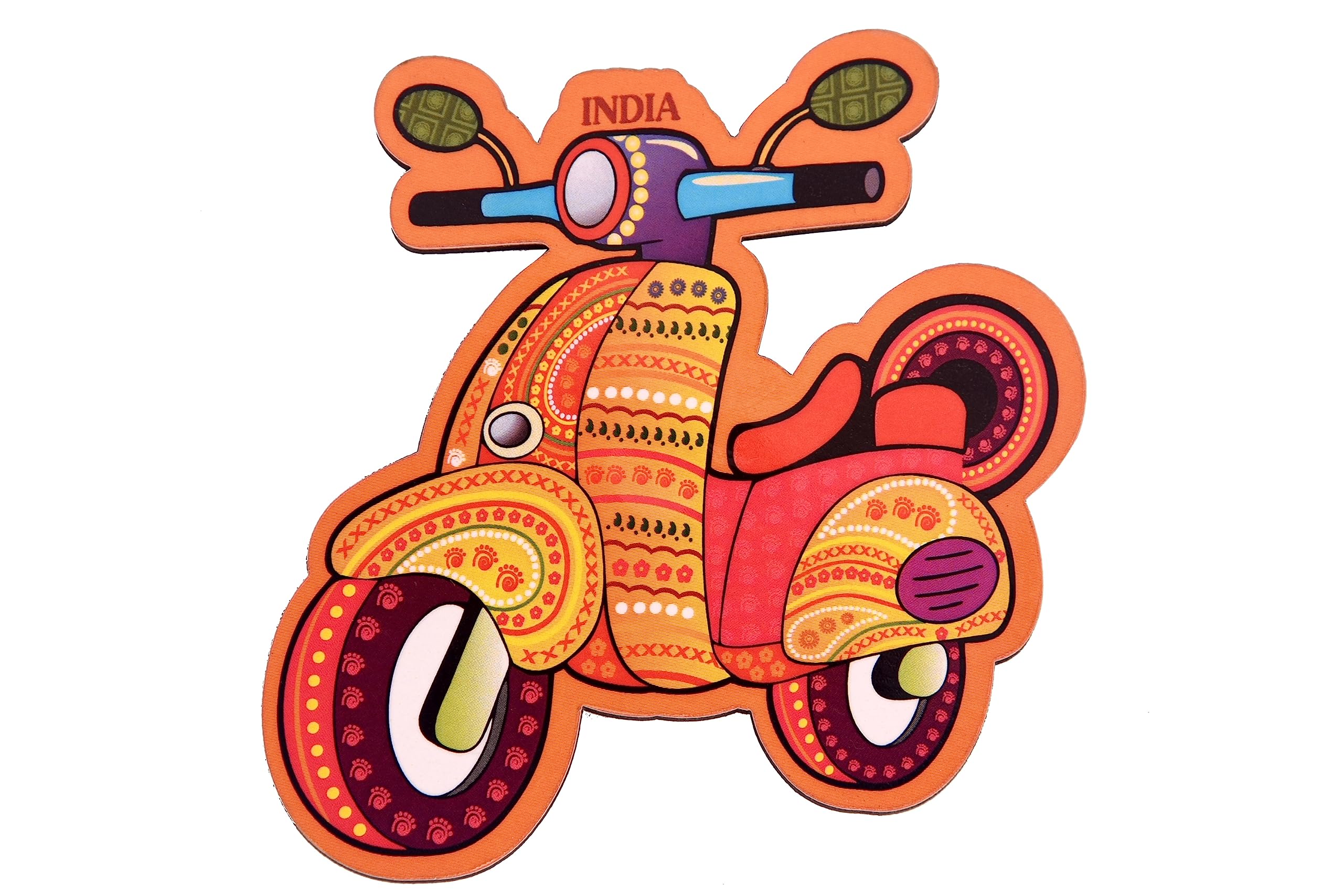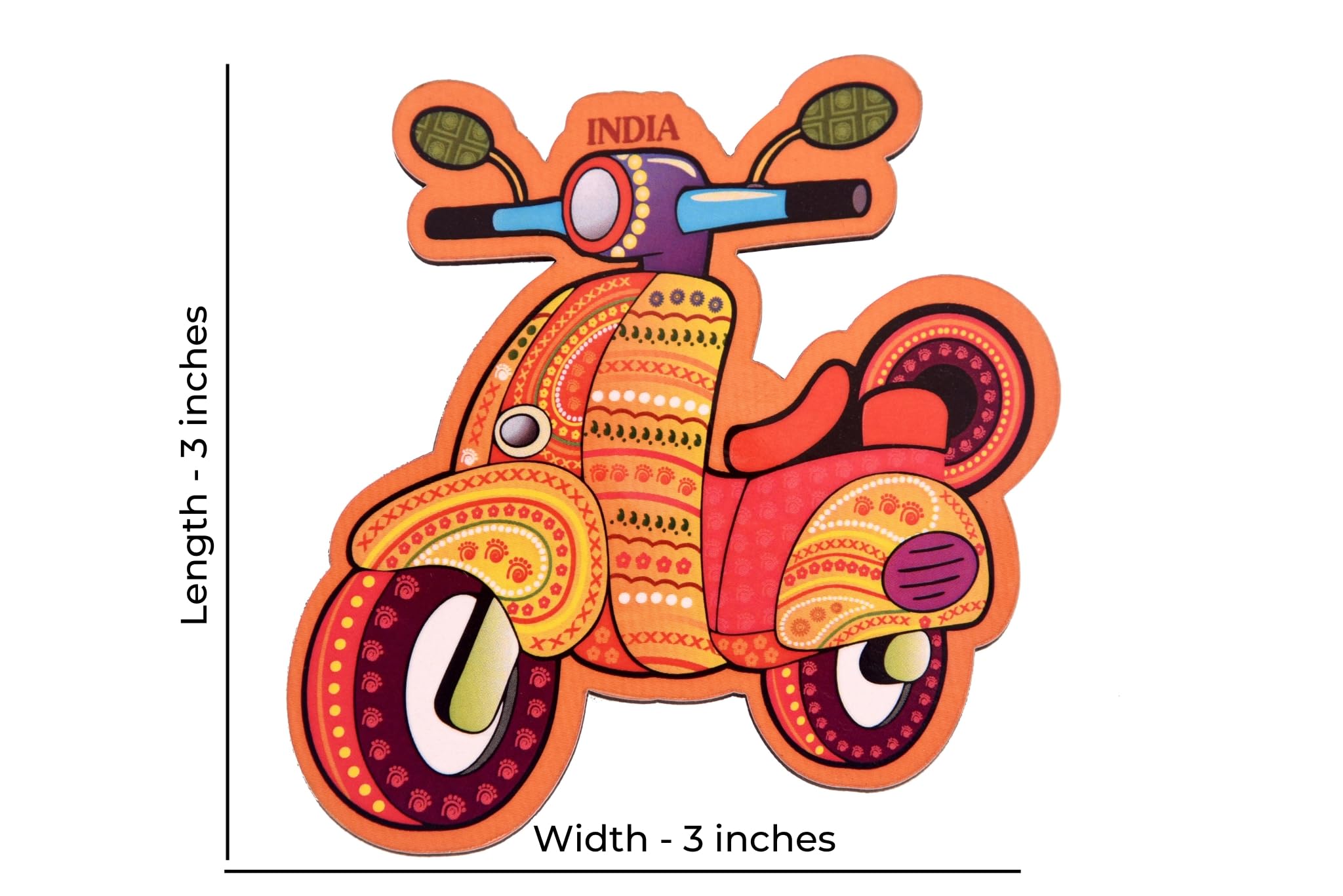 VARANASI WOODEN TOYS Scooter Fridge Magnet |Made in MDF|3 x 3 inches Size| Indian Inspired Design | Souvenir| Ideal for Gifting