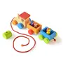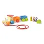 FEATURES: Colorful Jungle themed Pull along train set comes with an engine 2 wagons 3 animal peg dolls- Monkey Tiger and Bear.