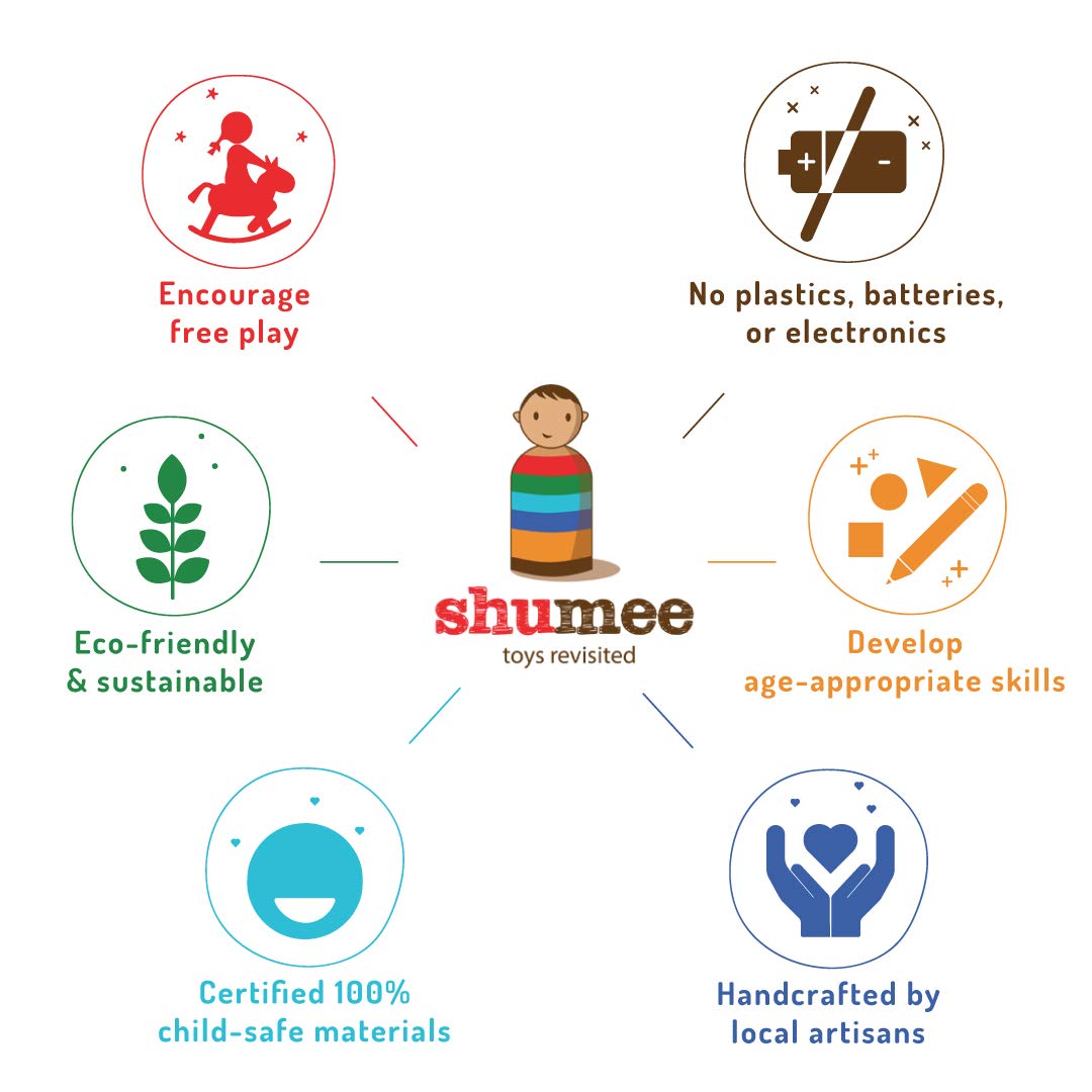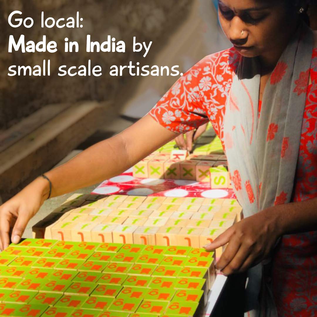 Handcrafted in India : 100% sheesham wood. Natural & eco-friendly materials non-toxic water-based paints child safe. No plastic