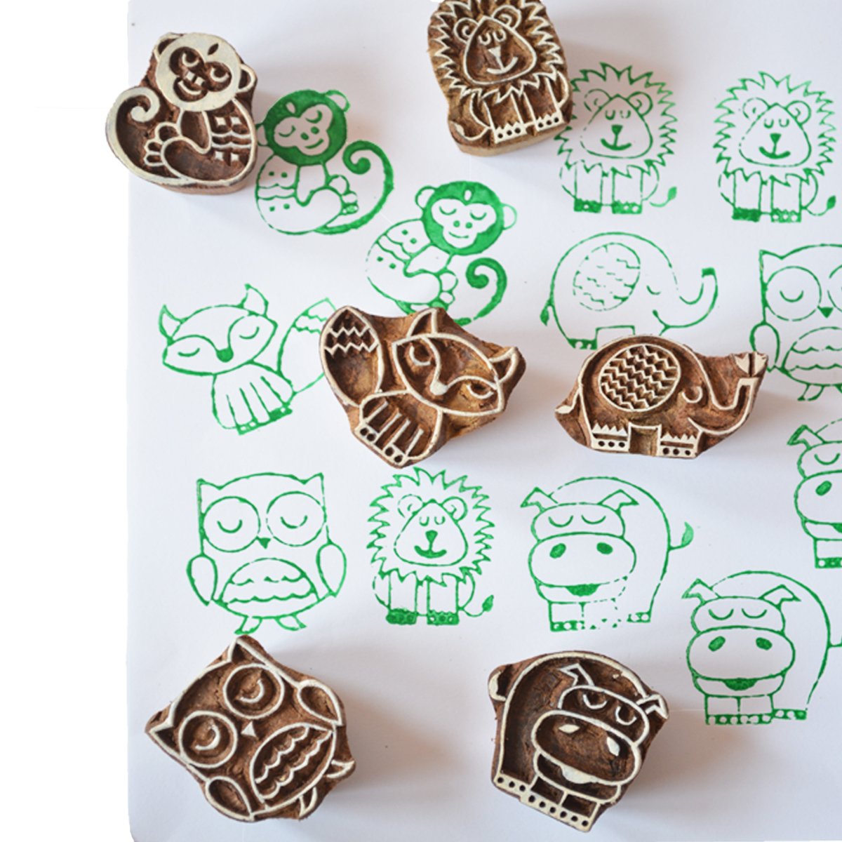 VARANASI WOODEN TOYS Wooden Stamps (3 Years+) - Educational Toys (Forest Friends Stamps)